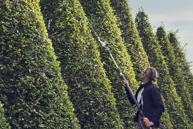 Leistungsstarke, teleskopierbare, akkubetriebene Stabheckenschere mit einer Reichweite von bis zu 4,5 m. Ideal zum Schnitt von hohen und breiten Hecken ohne Leiter, Gerüst oder mobiler Plattform sowie zum Schnitt von Bodendeckern geeignet. Der Schneidekopfwinkel ist in einem Radius von 120° frei einstellbar (-45 ° bis +75 °). Der hintere Stoßfänger bietet zusätzlichen Schutz und ermöglicht eine größere Reichweite. Keine direkten Emissionen und leiser Betrieb – ideal für störungsempfindliche Umgebungen. Allwetter-Einsatz (IPX4).