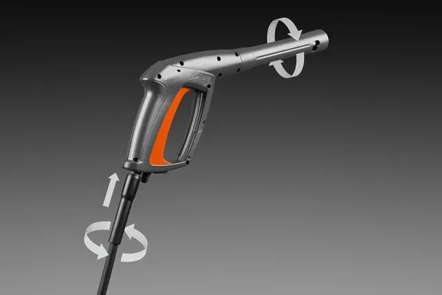 Der PW 370 ist mit verschiedenen Zubehörteilen kompatibel, und wenn die Arbeit beendet ist, lässt er sich mit Hilfe der Schlauchtrommel mit Stützführung schnell aufrollen und bietet eine effiziente Schlauchaufbewahrung. Außerdem verfügt er über große Räder mit weichem Profil für eine gute Traktion in anspruchsvollem Gelände und einen klappbaren Aluminiumgriff, der den Platzbedarf für die Lagerung verringert.